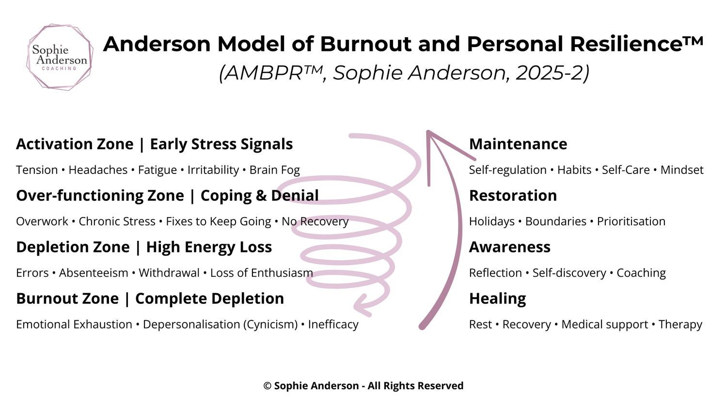 In my Anderson Model of Burnout and Personal Resilience™, "invisible" burnout is only manageable in the first two zones: the Activation Zone to the Over-functioning Zone.