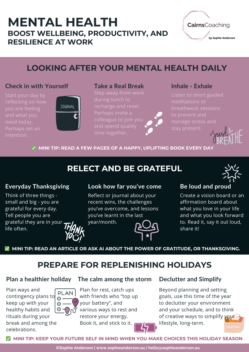 Focusing on mental wellbeing and health at work helps create a positive environment where employees feel and perform better, leading to higher productivity and a more energised, motivated team.